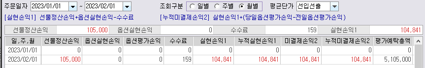 선물의 1일 정산에 따른 계좌 손익 상황